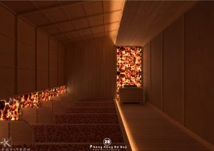 Thiết kế phòng xông hơi đá muối Himalaya bao gồm phần tường, trần, sàn làm bằng gỗ thông không lưu nhiệt, đảm bảo an toàn tuyệt đối cho Khách hàng trong quá trình trải nghiệm dịch vụ; kết hợp cùng các tấm đá muối dựng vách, trải sàn giúp tối ưu không gian, mang đến cảm giác ấm áp và thoải mái. Trong quá trình xông hơi, khi đá muối kết hợp với các dải tia hồng ngoại sẽ giải phóng các ion âm, giúp loại bỏ các tác nhân gây kích ứng, cải thiện, làm sạch chất lượng không khí, từ đó tạo ra môi trường xông hơi đặc biệt có lợi cho sức khỏe và tinh thần.